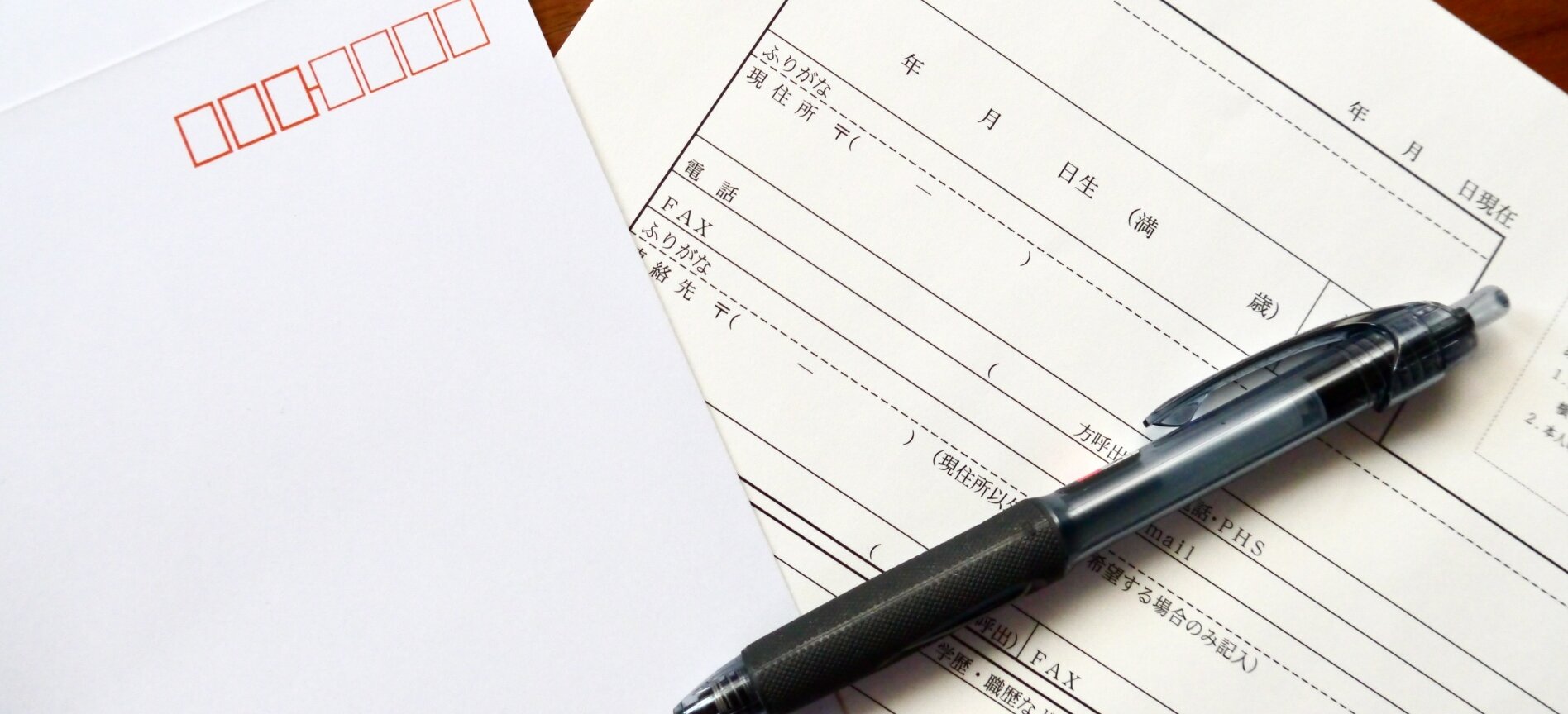 ◎履歴書は封筒に入れ、封筒の表側の左下に「履歴書在中」と朱書きしましょう。